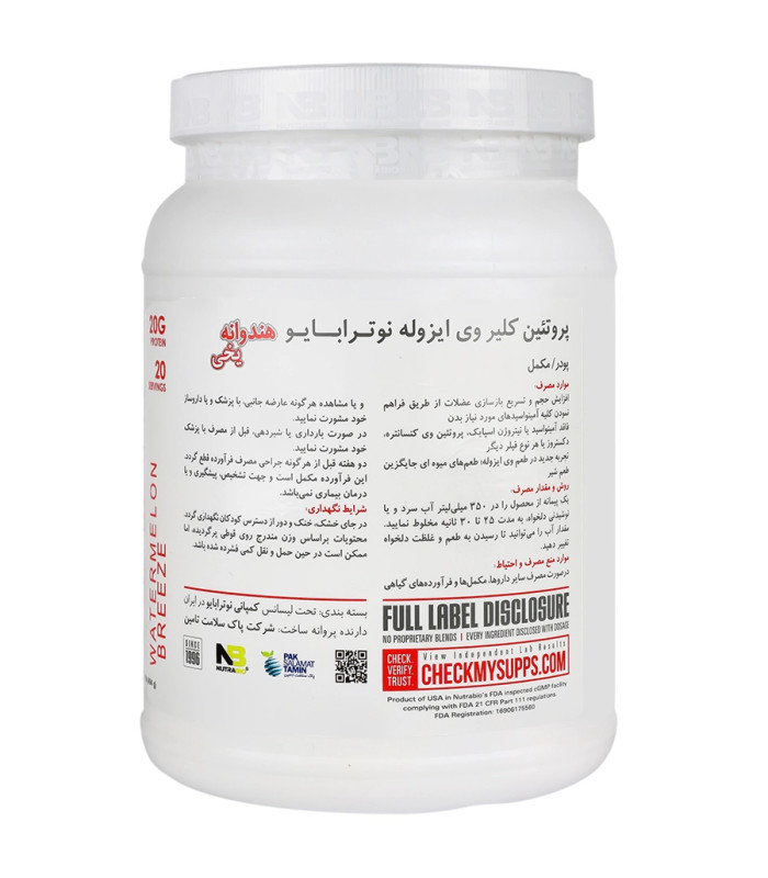 پروتئین کلیر وی ایزوله 499 گرم نوترابایو