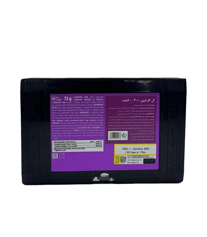 ترکیبات قرص ال کارنیتین حاوی 3000 میلی‌گرم ال کارنیتین تارترات (2000 میلی‌گرم ال کارنیتین) به ازای هر 3 کپسول است. ال کارنیتین 3000 ترک نوتریشن دارای خواص متعددی است که می‌تواند برای ورزشکاران و افرادی که به دنبال افزایش انرژی و بهبود عملکرد بدن هستند، مفید باشد.